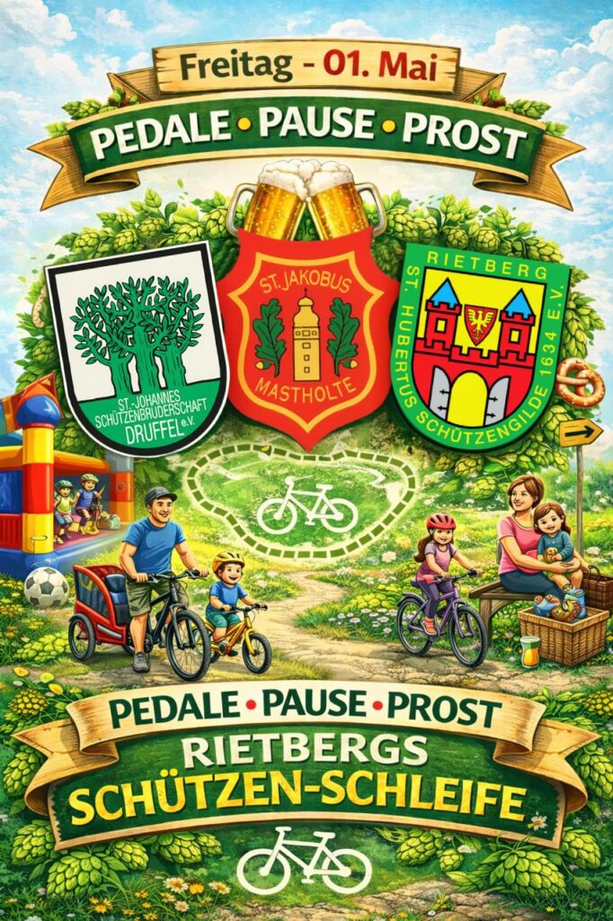 Rietberg – Der 1. Mai ist traditionell ein Tag für Fahrradtouren: Zahlreiche Gruppen, Familien und Freundeskreise aus der Region schwingen sich aufs Rad und genießen die gemeinsame Zeit in der Natur. Genau hier setzt eine neue Gemeinschaftsaktion an – und nimmt den Planungsaufwand gleich mit ab: Mit der „Rietbergs Schützen-Schleife“ haben drei Vereine erstmals eine fertig ausgearbeitete Route geschaffen, die sich ideal für den Maiausflug eignet.