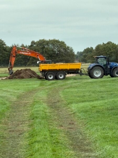 Zum anderen hat Schießmeister Etienne Nijrolder eine Wiese an den Teichwiesen zur Verfügung gestellt. Hier haben wir eine sogenannte Blänke eingebaut. Das heißt, sie wurde auf einer großzügigen Fläche ein Stück weit „tiefergelegt“. Durch diese „Mulde“ werden Natur und Artenschutz gefördert. Laut der Landwirtschaftskammer NRW stellen sie „Laichplätze für Amphibien dar, bieten Tränk- und Badegelegenheiten für Säugetiere, Vögel und Bienen, sichern Nahrungsreserven für insektenfressende Tiere wie Fledermäuse, Lurche und Vögel und gehören damit zu den artenreichsten Lebensräumen überhaupt“.